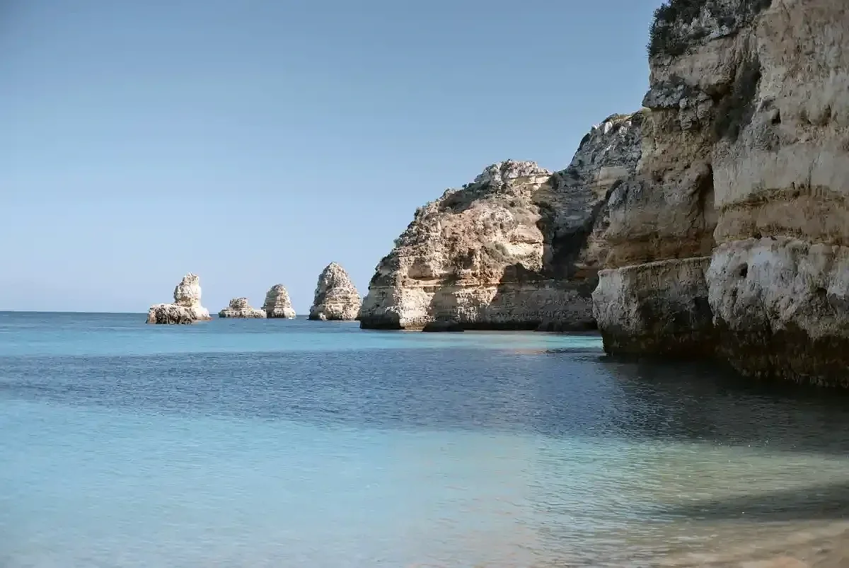 Small scenic coves define many of the most beautiful beaches along the southern coast. Praia da Marinha, Praia do Camilo, Praia do Castelo, and Praia do Carvalho belong to this category. These beaches are framed by dramatic cliffs and intricate rock formations, their beauty concentrated and intimate. Access often involves a steep staircase or tunnel, and the actual beach space shifts dramatically between low tide and high tide. Shade arrives early as tall cliffs cast long shadows. The reward is atmosphere. These coves feel held by the landscape, ideal for quiet swimming, photography, and short walk explorations between neighboring beaches.